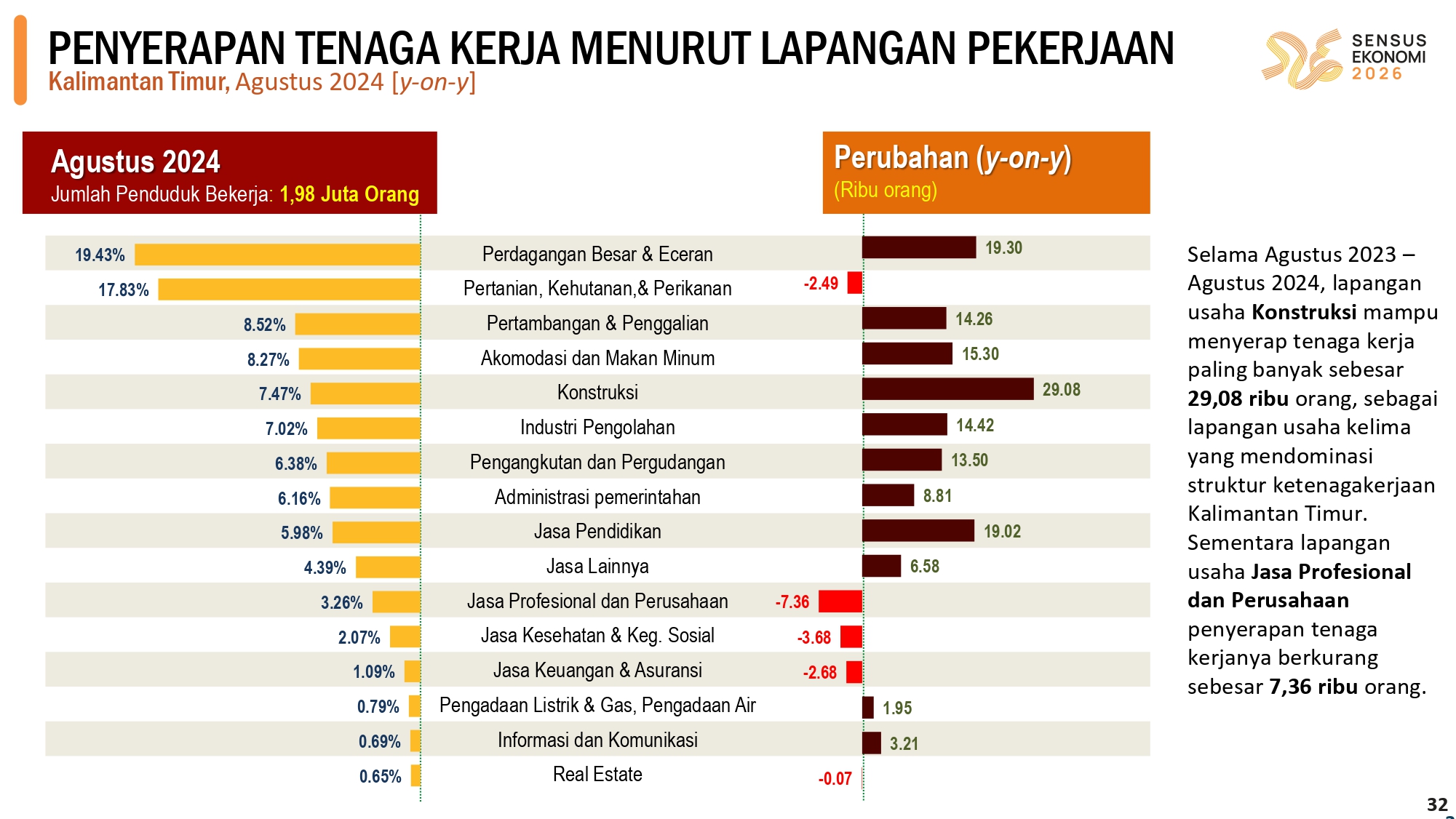 Penyerapan Tenaga Kerja Menurut Lapangan Pekerjaan diKalimantan Timur Agustus 2024